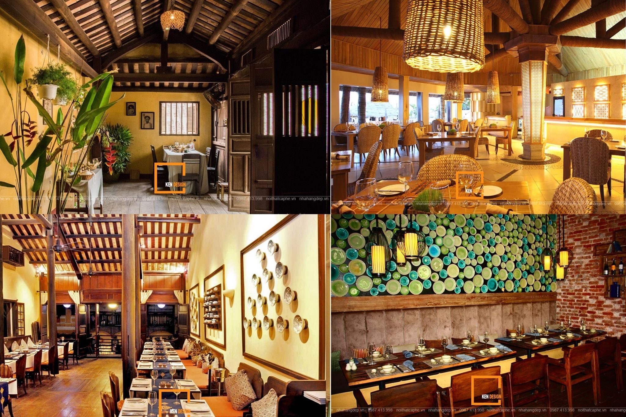 Nhiều chủ đầu tư lo rằng thiết kế nhà hàng phong cách Việt sẽ tốn kém. Thực tế, việc sử dụng vật liệu mộc mạc như tre, nứa, gỗ tái chế, gạch thô hay mây đan không chỉ tiết kiệm chi phí mà còn tạo dấu ấn khác biệt. Những vật liệu này thường dễ tìm, dễ thi công, lại mang hơi thở truyền thống, giúp khách hàng cảm nhận được sự ấm cúng và gần gũi.
