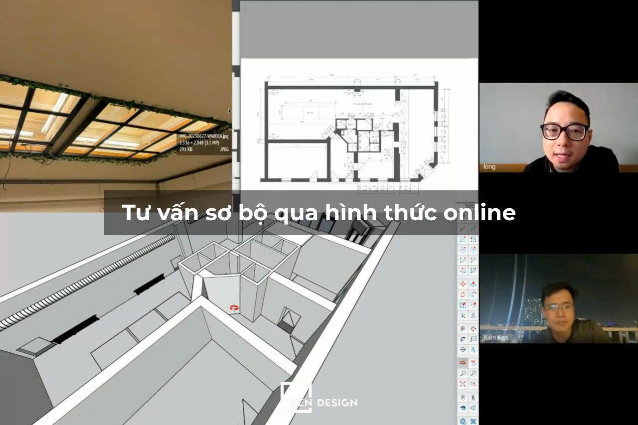Sau khi nắm được mặt bằng hiện trạng, Ken Design tiến hành tư vấn sơ bộ cho chủ đầu tư qua các buổi trao đổi online. Nội dung tư vấn tập trung vào phong cách thiết kế, cách bố trí công năng, định hình ngân sách và các yêu cầu, mong muốn của chủ đầu tư. Nếu chưa có ý tưởng thiết kế cụ thể, Ken Design sẽ giúp chủ đầu tư tìm được phong cách phù hợp nhất với mô hình kinh doanh cũng như xu hướng thị trường, thị hiếu của khách hàng mục tiêu.