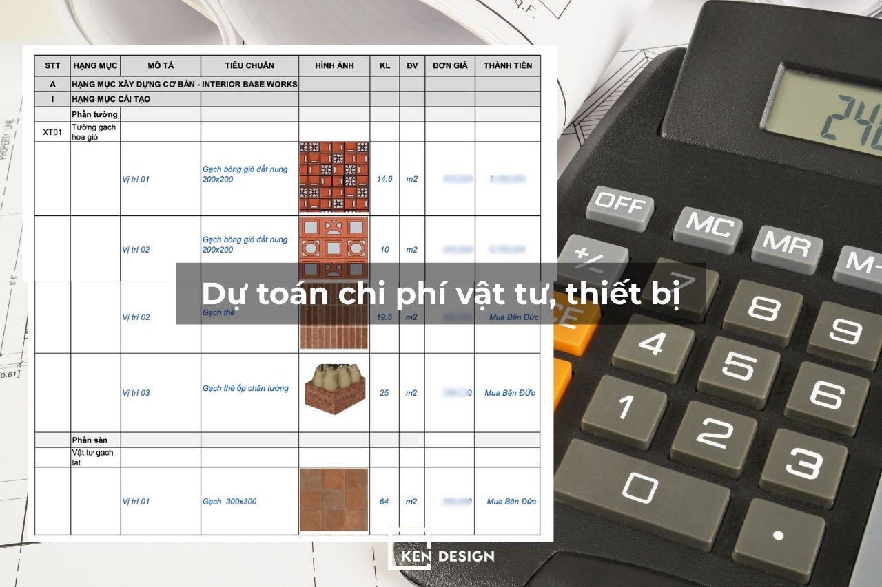 Bước cuối cùng trong quy trình là lập dự toán chi phí thi công. Ken Design sẽ bóc tách khối lượng công việc, tính toán đơn giá vật tư và dự kiến tiến độ thực hiện. Đối với các công trình ở nước ngoài, Ken Design còn hỗ trợ tư vấn thay thế vật liệu để phù hợp với nguồn cung địa phương nhưng vẫn đảm bảo tinh thần thiết kế ban đầu. Cần lưu ý là Ken Design sẽ dự toán với các phần vật tư, thiết bị vận chuyển từ Việt Nam sang.
