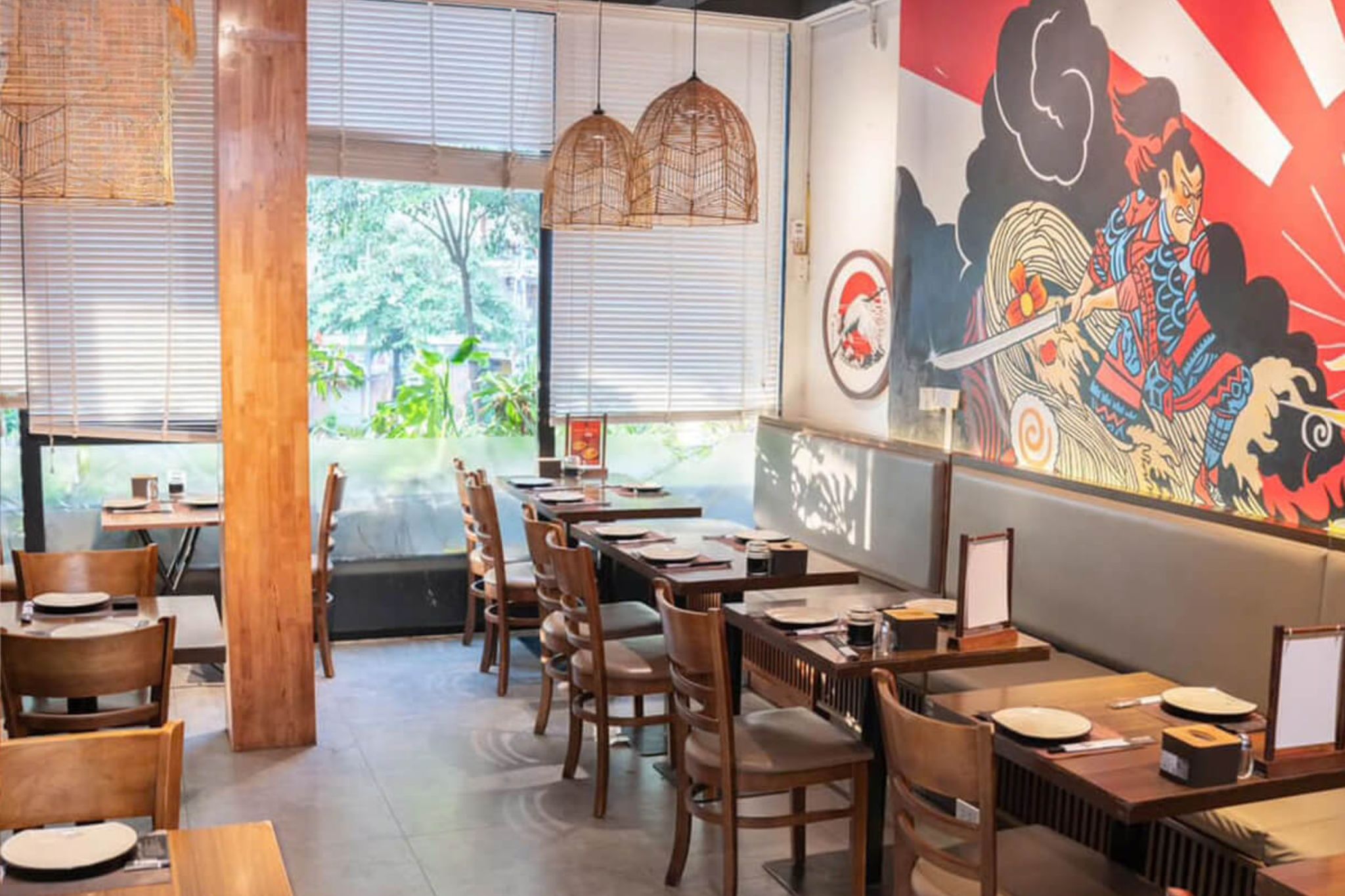 Khu ngồi tận dụng mật độ vừa phải: Vì thời gian dùng bữa ngắn và món ăn gọn, donburi có thể đạt hiệu suất chỗ ngồi tốt hơn nếu sử dụng bàn 2 người, bench áp tường và một số counter dọc cửa kính.