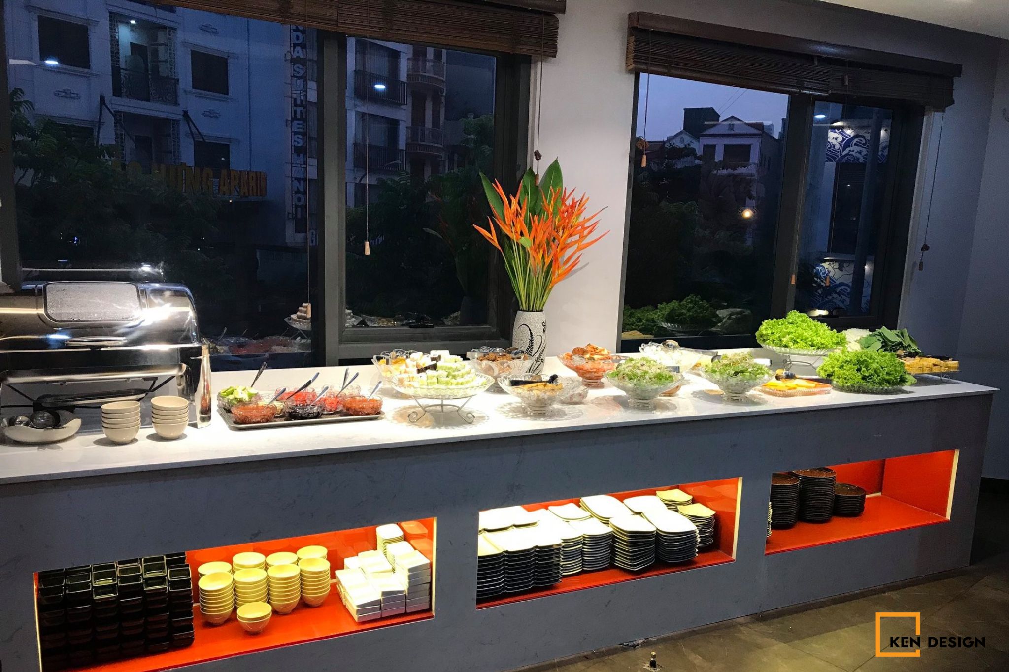 Điều đó sẽ tác động đến vị giác của khách hàng, giúp khách hàng cảm thấy dễ chịu, thoải mái khi sử dụng. Lối đi cho nhân viên phục vụ cũng được tính toán, đảm bảo khách hàng đi lại thoải mái, không ảnh hưởng đến các bàn đang ăn. Số lượng bàn ghế được bố trí vừa đủ, tạo không gian riêng tư cho từng nhóm bàn.
