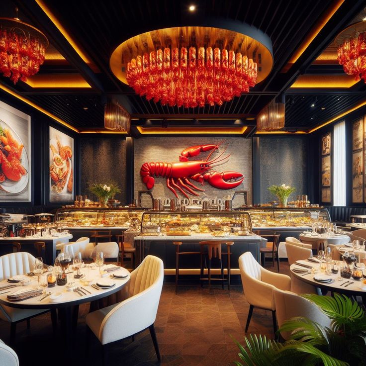 Phong cách hiện đại chú trọng vào sự tối giản nhưng tinh tế. Các đường nét thiết kế thẳng, gọn gàng, vật liệu kính và kim loại thường được sử dụng để tạo sự sang trọng. Ánh sáng vàng ấm áp giúp tôn lên sự hấp dẫn của các món hải sản cao cấp, phù hợp với phân khúc khách hàng trung lưu và cao cấp.